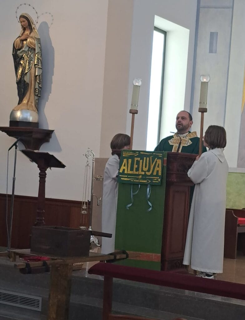Con un enfoque pedagógico y catequético, los niños participaron activamente en esta celebración, ayudando a dar mayor relevancia al momento. Al finalizar la Misa, portaron un cartel con la palabra Aleluya y lo llevaron en procesión hasta el jardín de la parroquia, donde sería simbólicamente enterrado.